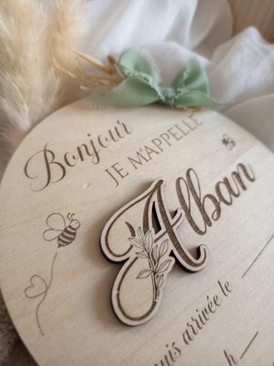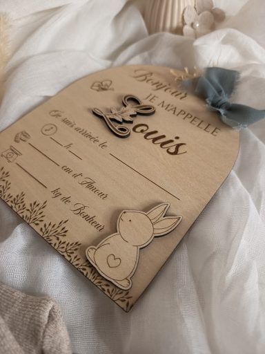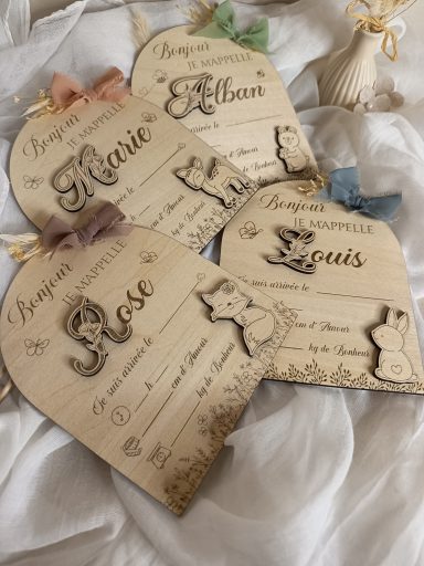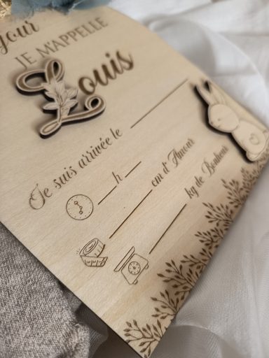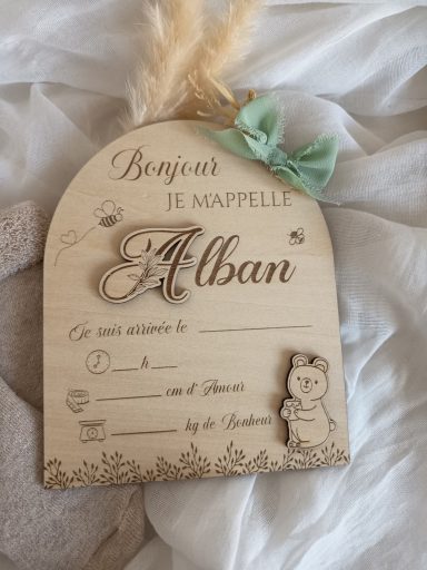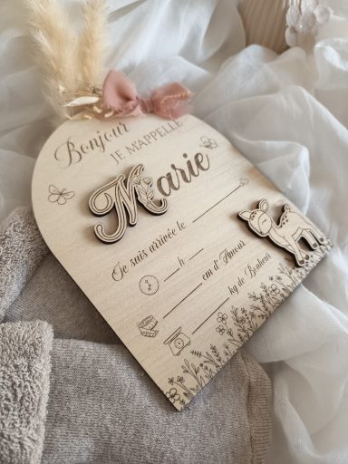 Elle se personnalise avec le prénom de Bébé et le petit Compagnon que tu lui as choisi. Le jour de la Naissance de Bébé, il n'y a plus qu'à la remplir et la placer prêt de Bébé pour annoncer en une photo sa Naissance et révéler son prénom si tu le gardais secret jusque là !
